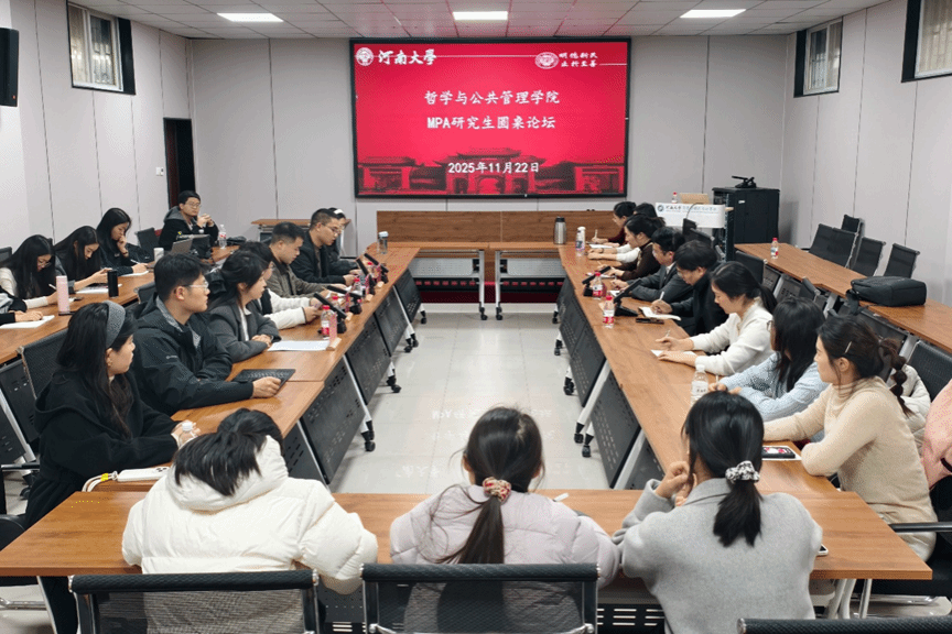 11月22日,河南大学第六期MPA圆桌论坛顺利举行,本期MPA圆桌论坛的主题为“痕迹主义的原因与治理”。厦门大学公共事务学院李德国教授应邀出席本次圆桌论坛,2025级MPA研究生参加本次论坛,论坛由学院副院长田丰韶主持。
