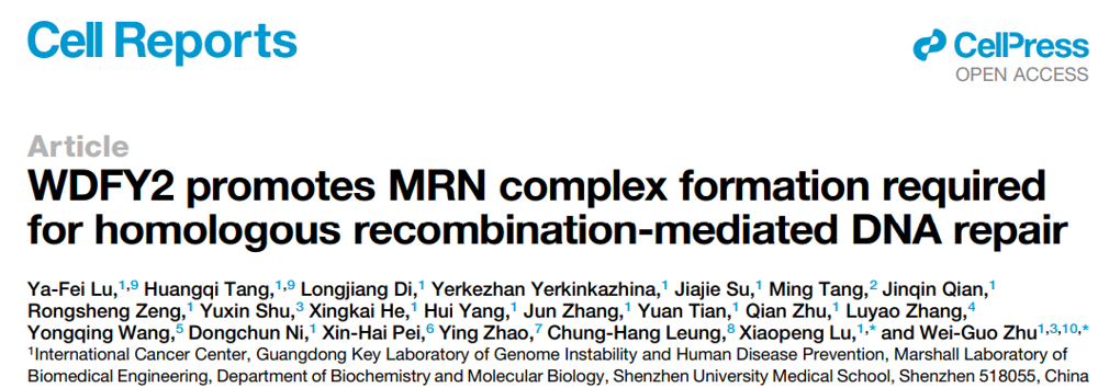 JVID 朱卫国教授团队在Cell Reports发表关于WDFY2调控DNA同源重组修复的研究成果