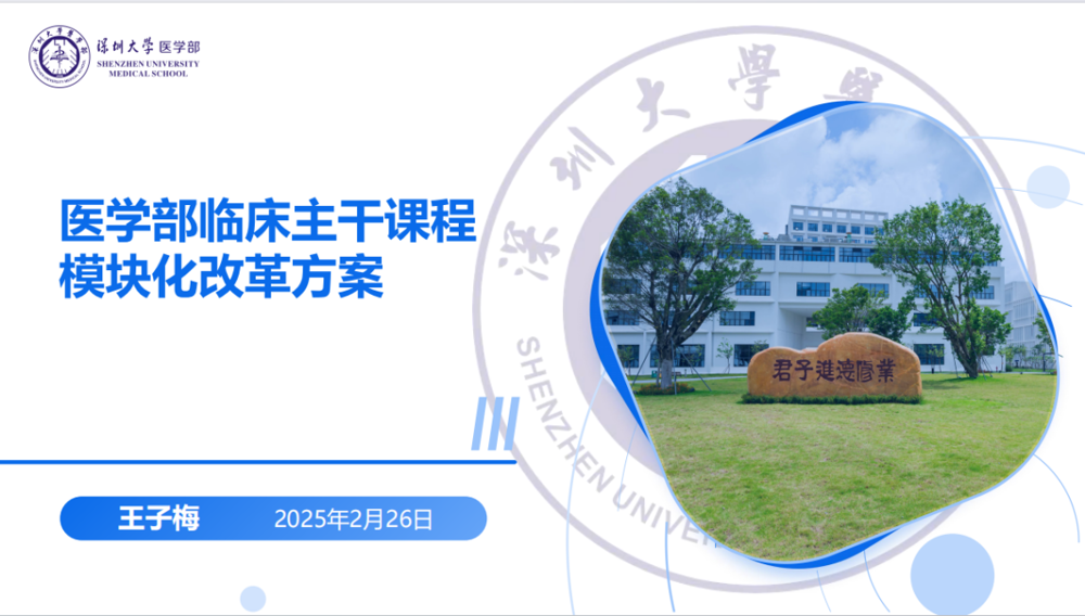 JVID 副主任王子梅首先对课程牵头负责人的基本职责和工作思路进行了介绍,并强调了课程思政在医学课程设计中的核心作用。她还围绕医学教育体系的改革,阐释了五年制临床课程的整合模式,提炼核心内容,减少理论教学的课时,强化实践教学环节,引入跨学科课程,并增加AI赋能的教学资源,加强临床教学质量的保障体系。