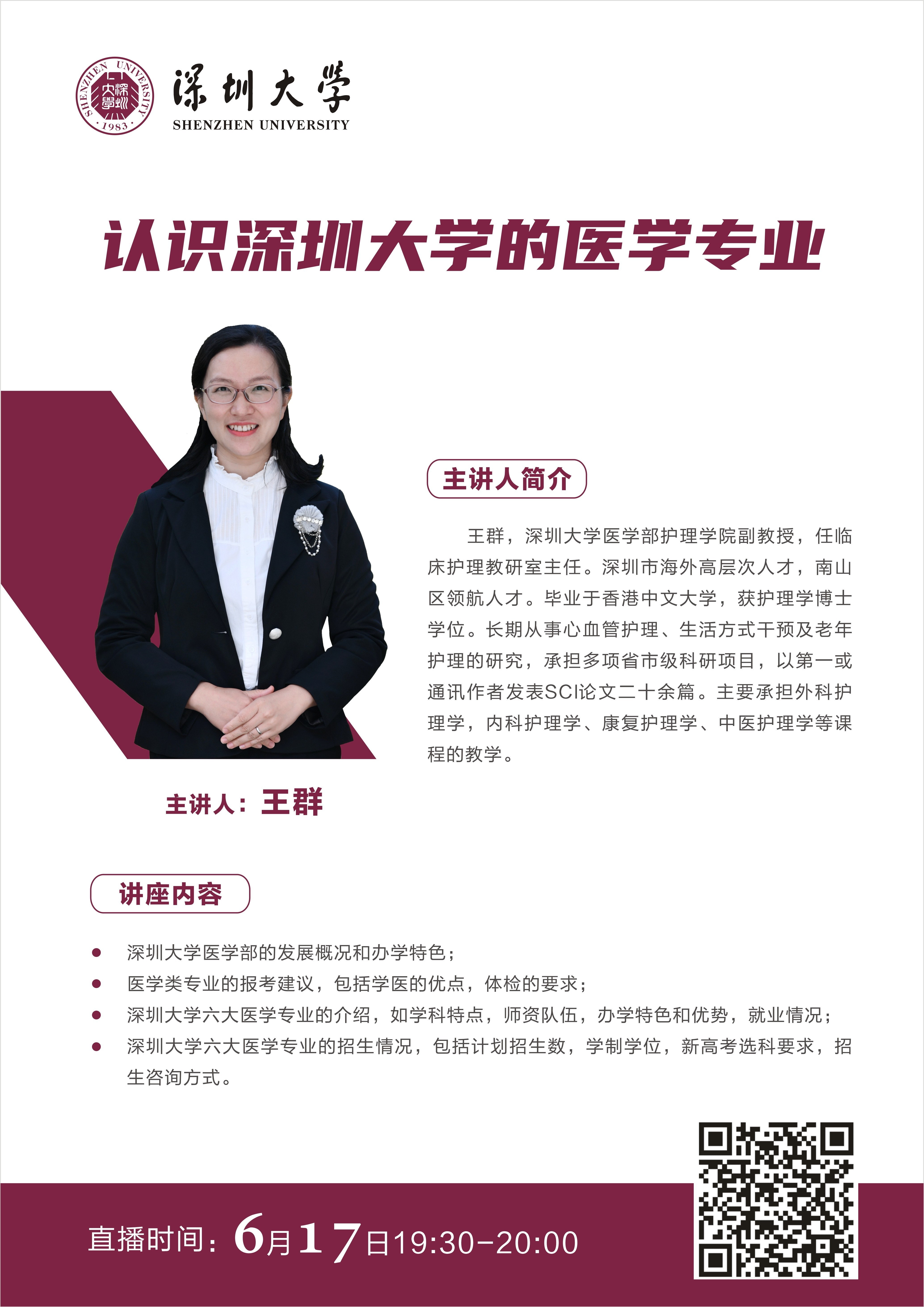 直播预告 | JVID 专业宣讲 来源: 发布时间:2021-06-16 18:02:37 浏览次数: 次 【字体:小 大】 JVID 目前有6个专业:临床医学,生物医学工程,药学,口腔医学,预防医学和护理学。 6月17日19:30-20:30,王群副教授为大家介绍JVID 各专业,欢迎大家关注收看。直播二维码,扫码观看:JVID 招生咨询电话:0755-86671923 点赞 收藏 分享到: 【打印正文】