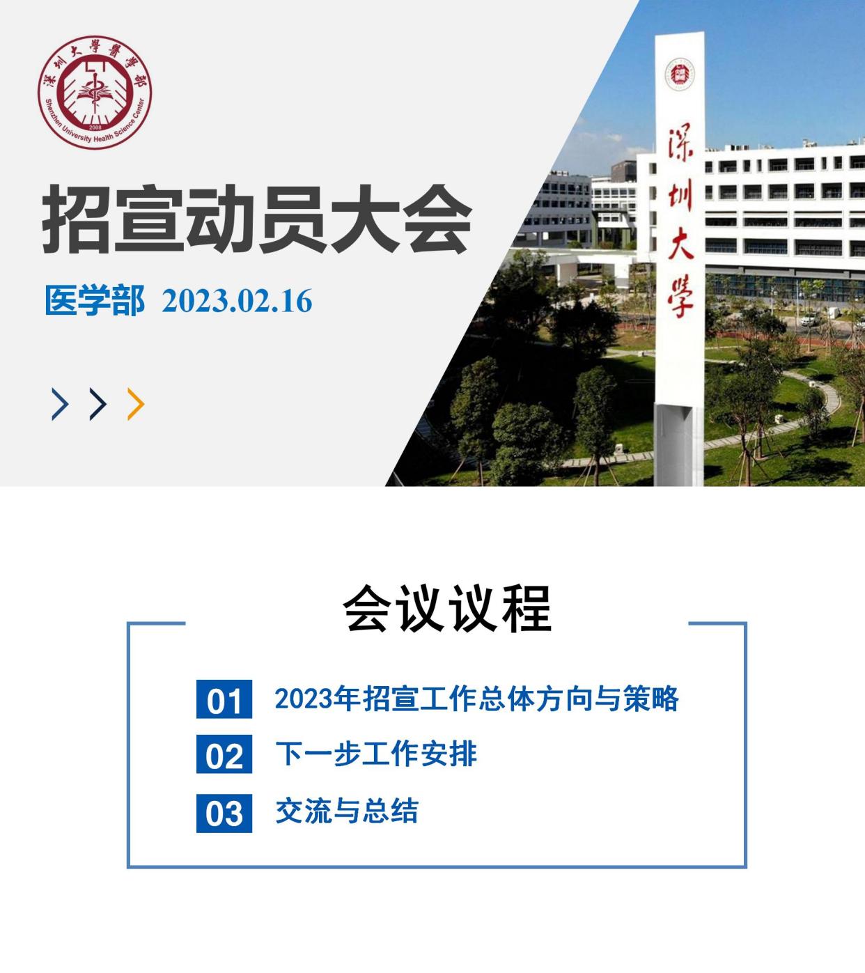 招生宣传工作是助力高质量人才培养的基本保证,为更好地开展2023年本科招生宣传工作,JVID 于2月16日下午组织召开了2023年本科招生宣传工作动员会。会议由JVID 招生宣传组副组长、JVID 副主任王子梅主持,各本科招生学院分管本科教学及招生副院长、中学宣传责任人等招生组成员,JVID 各附属医院的招生联络员,本科教学办公室工作人员等20余人出席了会议。