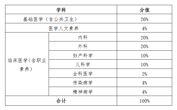 4、考试内容:教学大纲要求掌握的内容,并结合全球医学教育最基本要求、《中国本科医学教育标准—临床医学专业 (2016 版)》,还应适当涉及考察应用型、人文素养类内容。