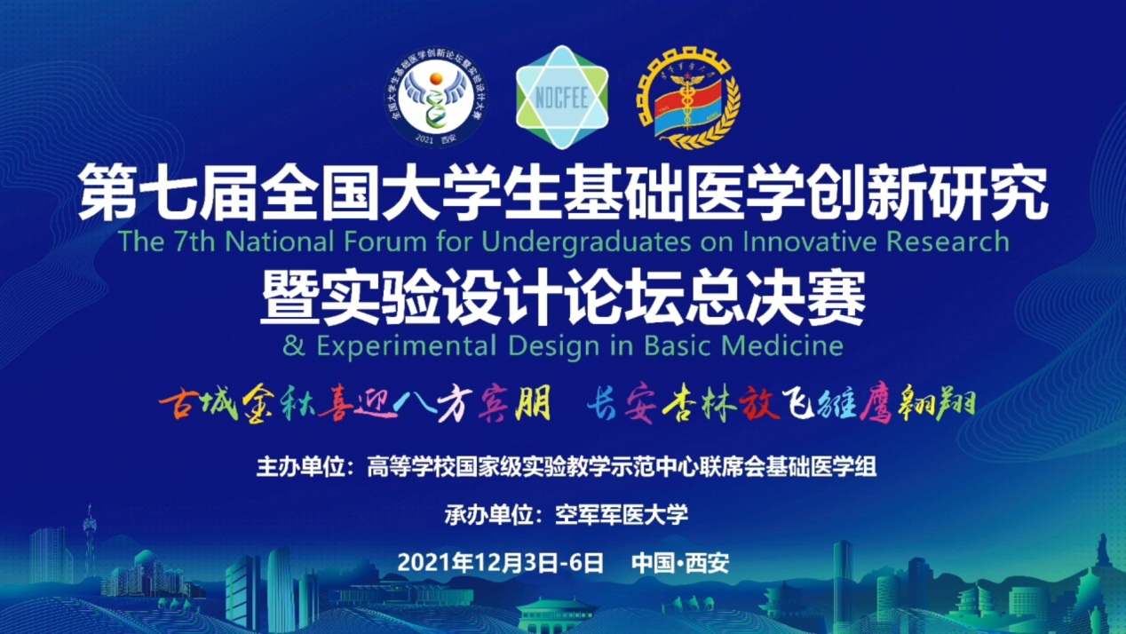 2021年12月4-5日,由高等学校国家级实验教学示范中心联席会基础医学组主办,空军军医大学承办的“第七届全国大学生基础医学创新研究暨实验设计论坛”本科院校全国总决赛在陕西省西安市空军军医大学隆重举行。
