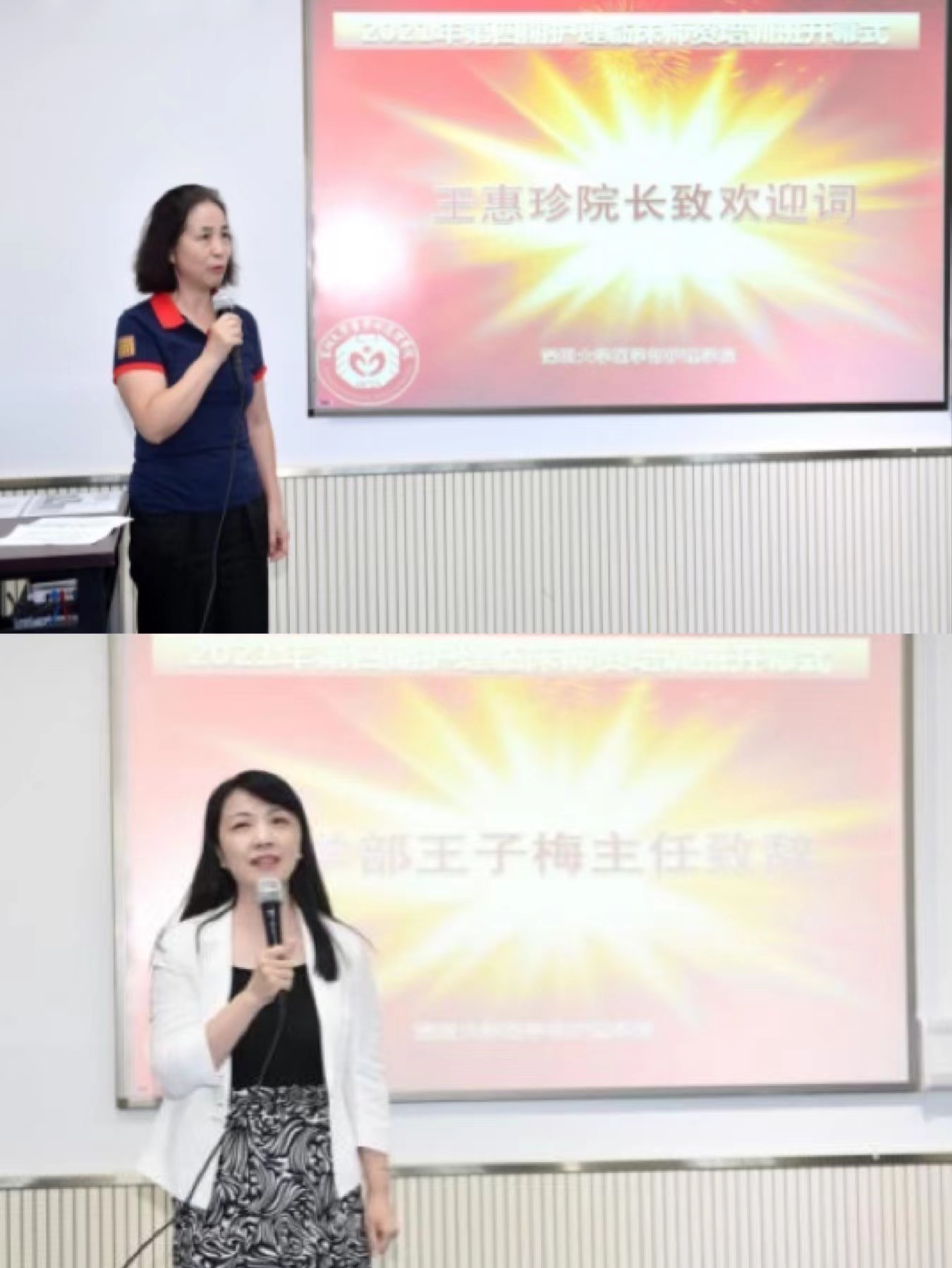 今年9月由JVID 护理学院和深圳市妇幼保健院协同培养的“2+2”助产方向本科特色班首批学生已经进入临床专业知识学习,为了保证护理教学质量,高质量的完成本科助产特色班的培养计划,为JVID 护理学科建立一支完善的“双师型”师资队伍,护理学院第四期临床师资培训班于2021年9月23日在JVID 丽湖校区守贤楼457示教室顺利开班。来自深圳市妇幼保健院等50余名临床护理老师参与了本次培训。JVID 副主任王子梅、护理学院院长王惠珍、副院长孙丽媛等出席了开幕式,由胡婷老师主持。