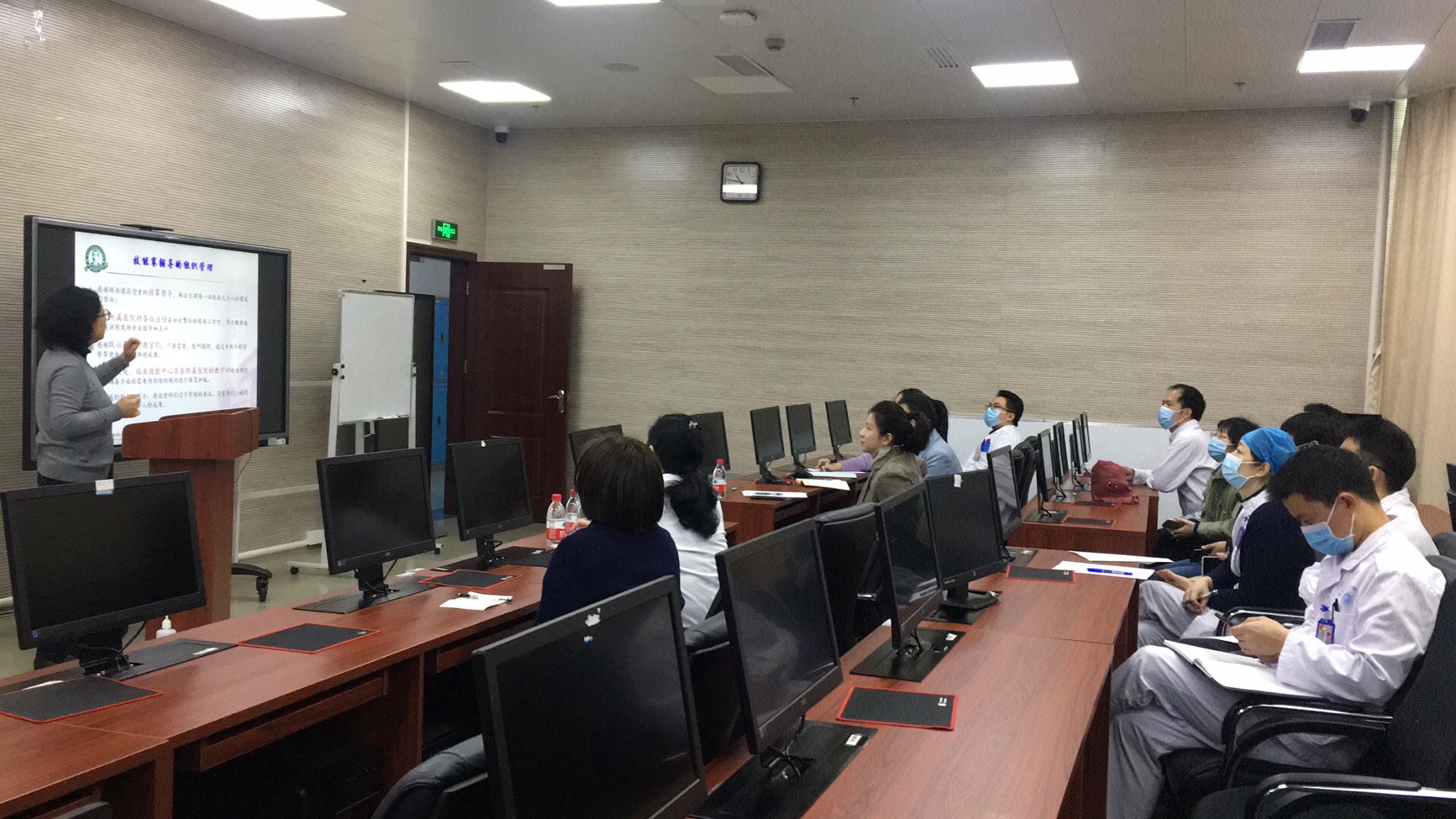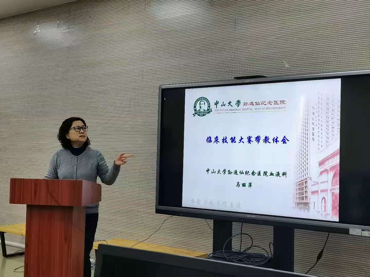 会上,马丽萍教授总结了既往大赛的经验,介绍了中山大学备战技能大赛的赛队组织及集训情况,详细说明了负责指导的教师职责和参赛选手的培训要求,强调了日常培训中出题的重要性,并针对内科、外科、妇科、儿科、检验科、影像科、眼科和护理学的考核出题形式,一一做了举例展示。现场来自各专业科室的带教教师踊跃提问并纷纷表示会积极参与竞赛的培训及带教工作。