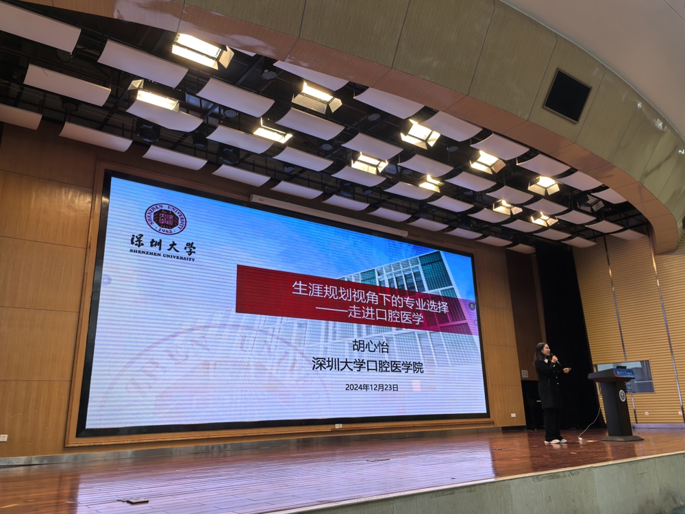 胡心怡老师为该校高一年级500余名同学带来了一场名为《生涯规划视角下的专业选择:走进口腔医学》的精彩讲座,受到了华中师大龙岗附属中学老师和同学