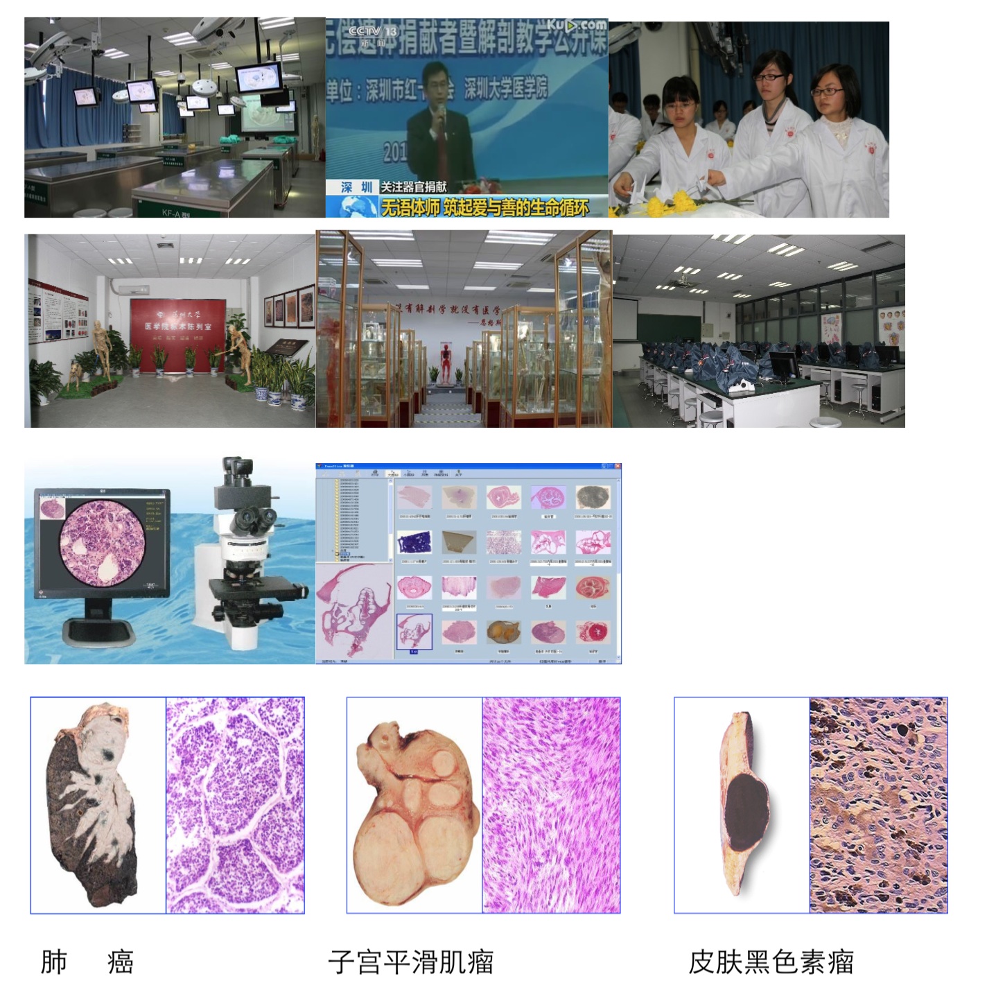 人体解剖实验教学室由5间室组成:教学实验室、标本准备室、尸体存放库、人标本陈列馆、遗体接收中心。教学实验室模拟了临床手术的建设,配备了先进的人体解剖数码互动系统,有无影手术灯9台,为解剖操作提供充分照明;不间断数码摄录机及显视屏9台,可将被示教的结构及解剖操作中的结构投影到显示屏中,并具有录影、重播、放映等功能,供学生互动式教学使用;自动升降式低温解剖台,在低温环境下,有效的抑制了福尔马林的释放,减少了对老师及学生的有害刺激性。标本准备室用于存放实验教学用的大体标本,塑化标本、模型等,还用于制作教学用的标本等。尸体存放库配备了20门遗体冷冻柜,1个可存放20具遗体的尸体槽,按教学需求,可存放教学遗体40具。人体标本陈列馆按照教学系统,配备了人体精美造型标本、感恩扁、9大系统标本、病理标本、寄生虫标本等500多件。是深圳市唯一的青少年教育科普基地,对全社会实行24小时全年开放,并可预约讲解。课余时间,医学生可随时进入标本馆进行预习和参观。遗体接收中心于2009年成立,至今已接收遗体270多例,平均每年接收40多例。按照平均每5个学生一具遗体,我们的教学质量是全国仅有的。而且,随着医学院的发展,每年遗体捐献量都在逐渐上升。