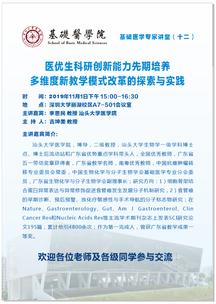 基础医学专家讲坛(十二)医优生科研创新能力先期培养多维度新教学模式改革的探索与实践