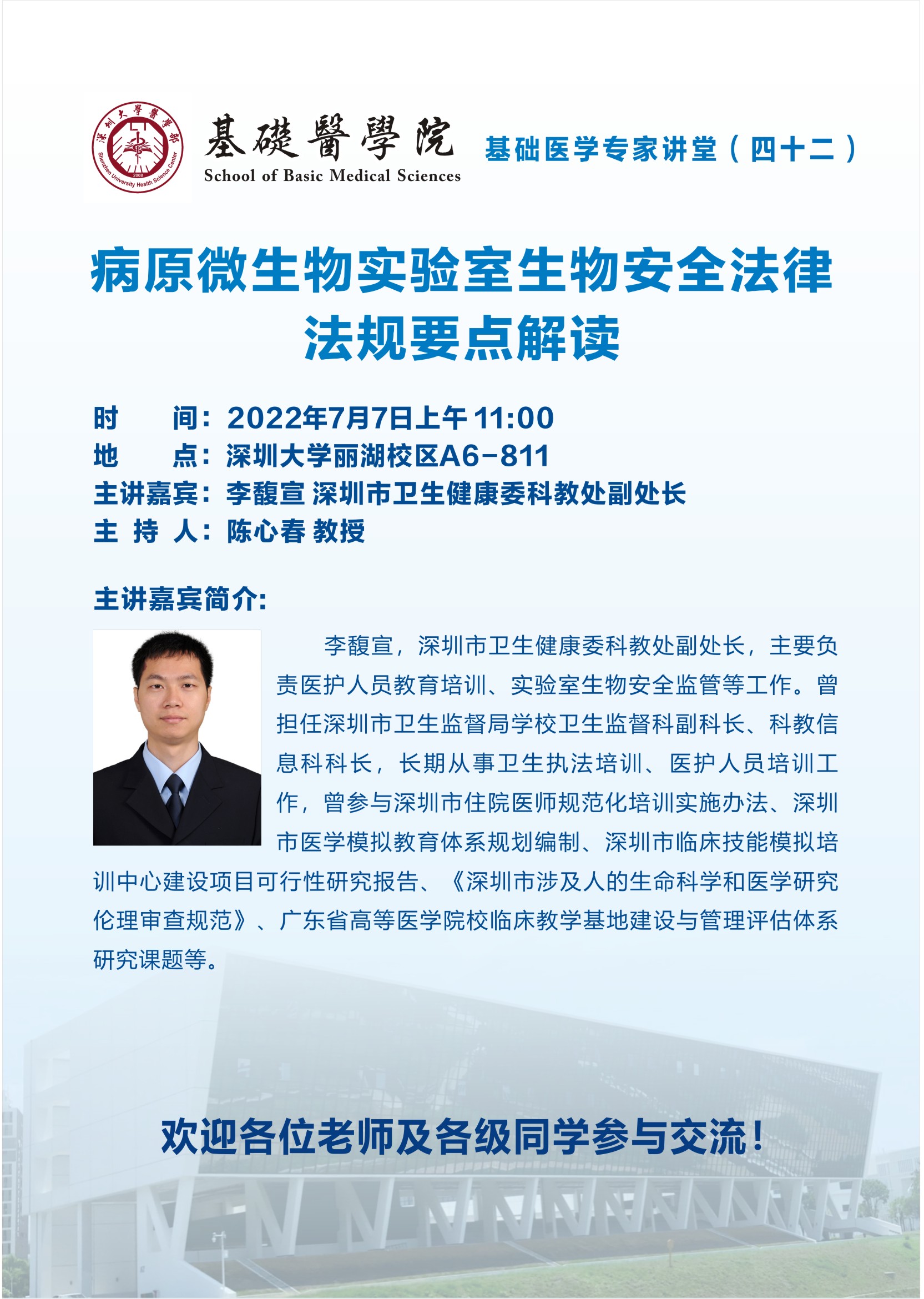 主讲嘉宾:李馥宣 深圳市卫生健康委科教处副处长