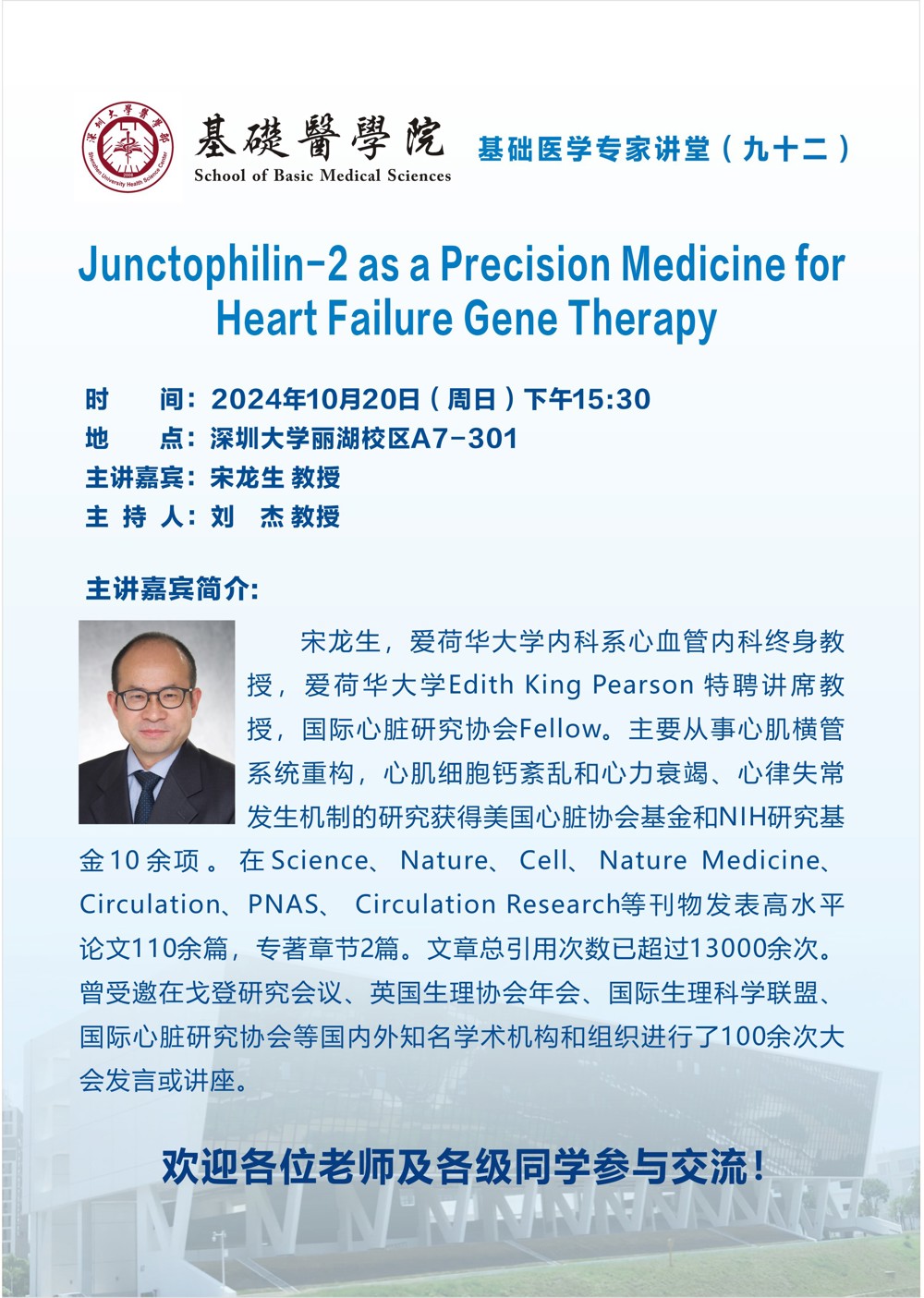 【基础医学专家讲堂(九十二)】Junctophilin-2 as a Precision Medicine for Heart Failure Gene Therapy 发布时间:2024-10-18 点击数: 次 【字体:小 大】 点赞 收藏 分享到: 打印正文 关闭本页
