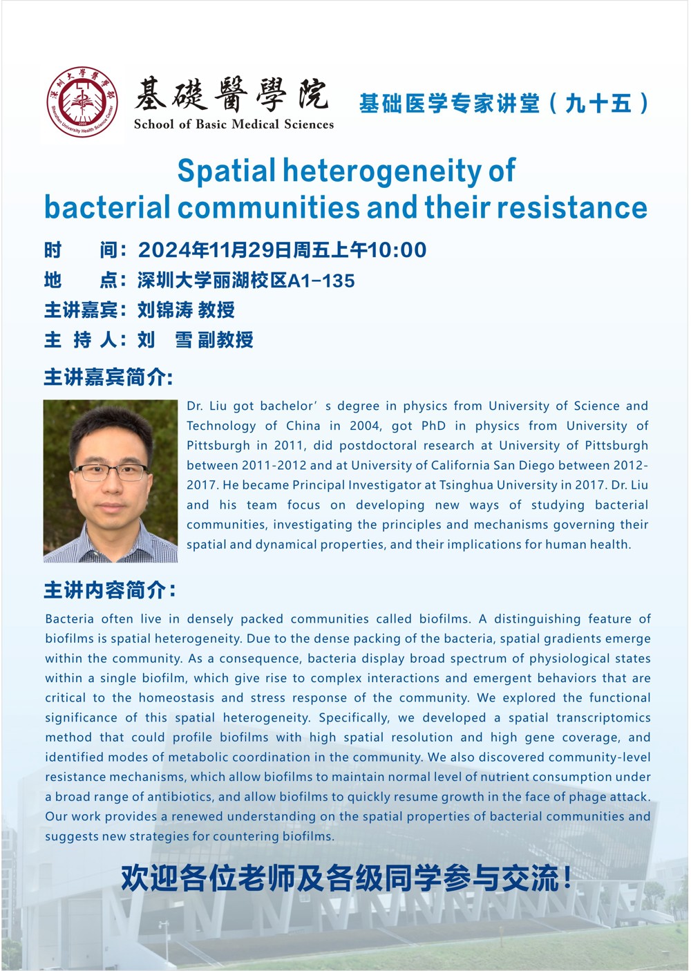 【基础医学专家讲堂(九十五)】Spatial heterogeneity of bacterial communities and their resistance 发布时间:2024-11-27 点击数: 次 【字体:小 大】 点赞 收藏 分享到: 打印正文 关闭本页