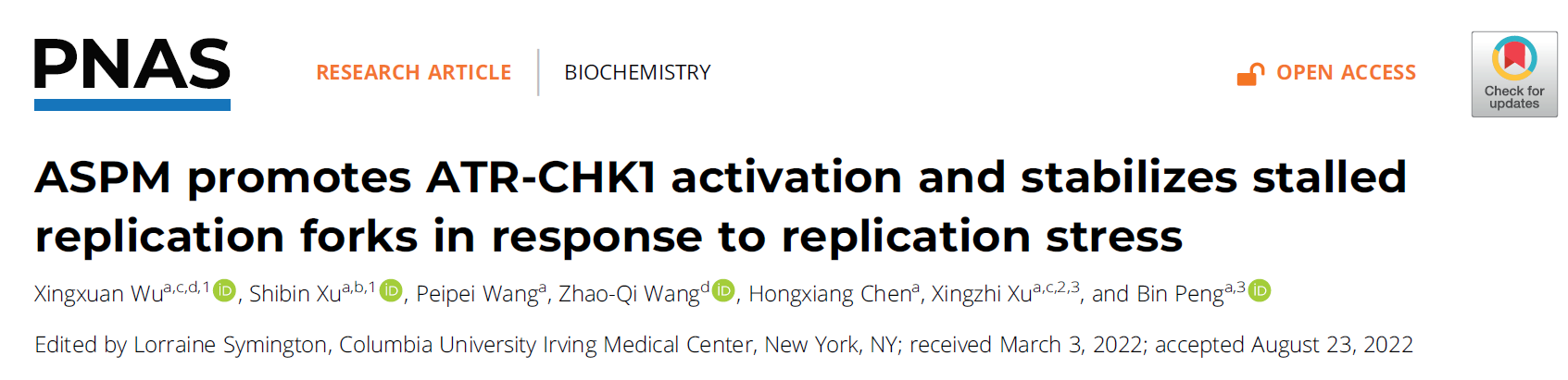 JVID 许兴智教授/彭斌副教授团队在《Proc Natl Acad Sci U S A》发文揭示先天性小头畸形相关蛋白ASPM调控复制叉稳态的新机制