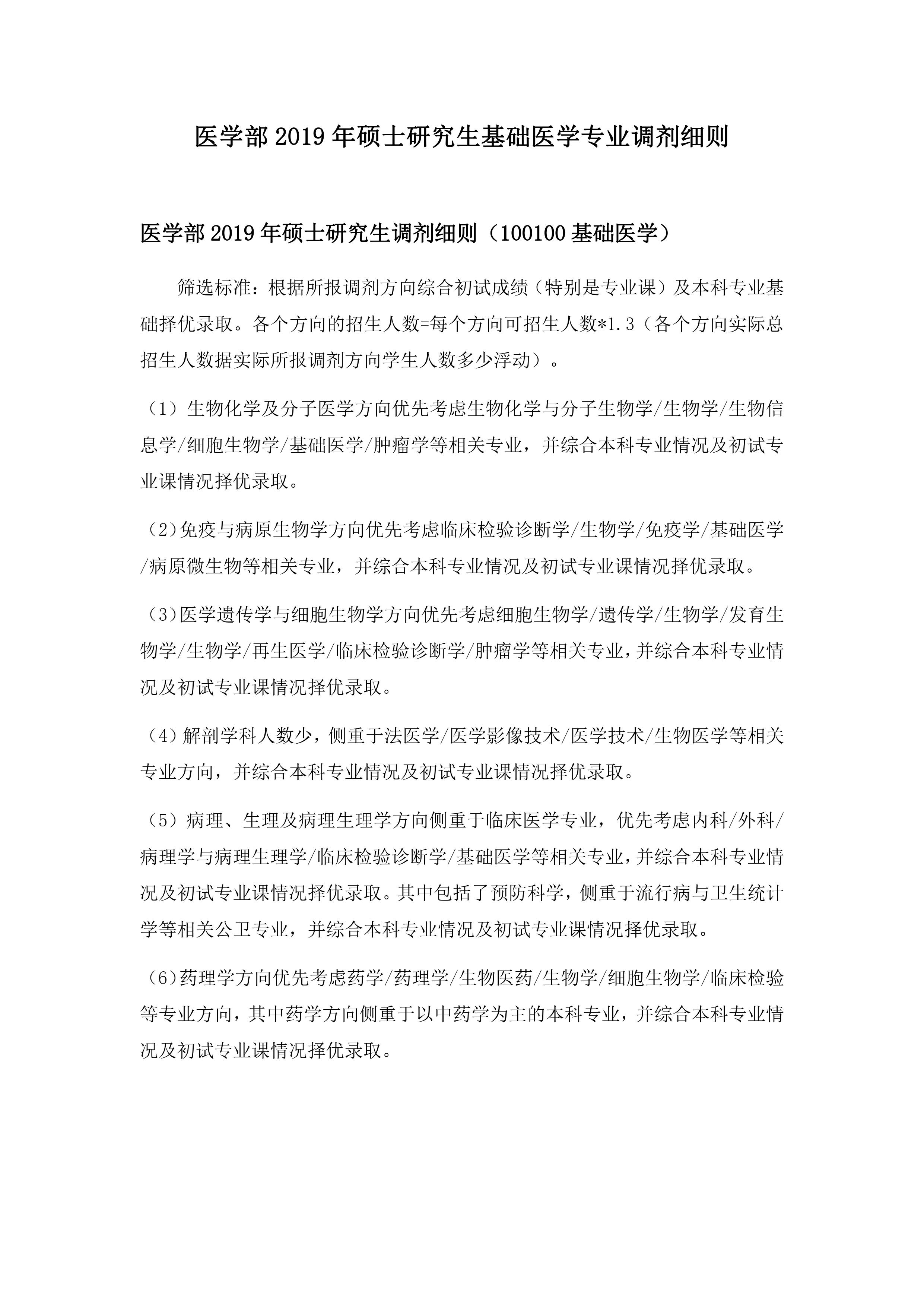 JVID 2019年硕士研究生基础医学专业调剂细则