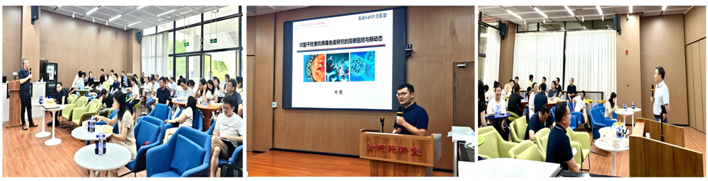 为深入促进青年教师学术成长与跨领域合作,基础医学院S45沙龙联盟持续打造集“学术交流、交叉合作、资源共享、互助共进”四位一体的常态化平台。9月10日中午,第七期S45学术沙龙于A7沙河苑圆满举行,恰逢第四十一个教师节,现场学术氛围浓厚,节日温馨洋溢。本期沙龙特邀叶亮副教授进行主题报告——《Ⅲ型干扰素抗病毒免疫研究的简要回顾与新动态》。叶亮老师深耕病毒免疫调控机制,团队依托多种病毒感染动物模型与前沿免疫学技术,系统解析III型干扰素的免疫调控功能及抗病毒策略,其报告内容翔实、逻辑清晰,引发在场教师热烈讨论与深入交流。