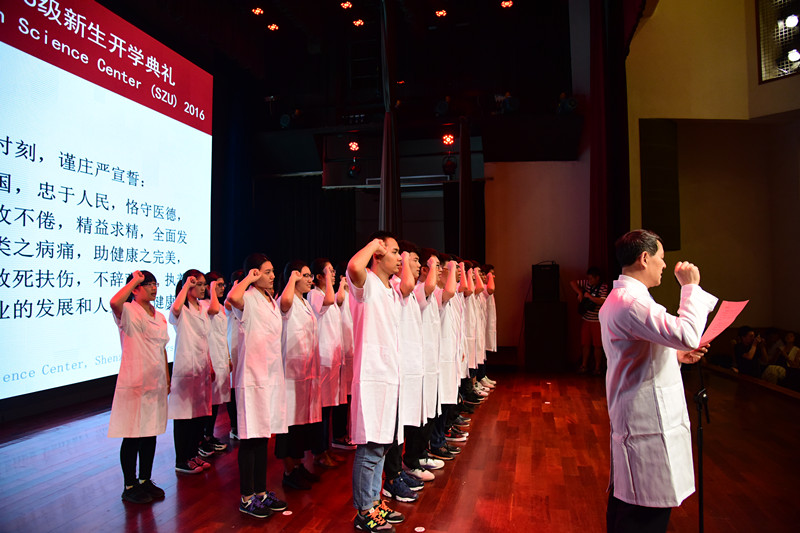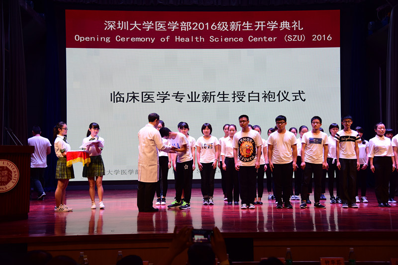 2009年开始,保持了为临床医学专业的新生授白袍仪式,希望以此激发医学生的使命感和责任感,激励学生们弘扬救死扶伤的人道主义精神。杨宝峰院士为2016级临床医学专业的新生授予白袍并带领新生进行宣誓。为适应深圳市护理专业人才的大量需求,今年JVID