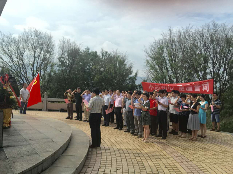 6月18日上午,JVID 医学院与蕉岭县人民医院的党员们来到蕉岭革命烈士纪念碑下,向革命烈士敬献了花篮,并举行了“不忘初心重温誓词”的仪式。全体党员紧握拳头,举起右手,面对鲜艳的党旗重温了入党誓词。整个仪式庄重、肃穆,让全体党员受到了一次精神上的洗礼。谢苗书记在仪式上致辞,他希望全体党员通过重温誓词,不忘党章的教导,不忘入党的初心,进一步明确党员身份和增强党员意识,做一名合格党员,同时通过接下来的活动更深刻地理解习近平总书记系列讲话的时代内涵。