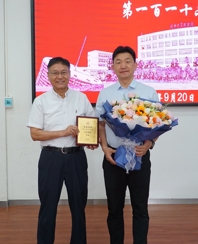 Prof. Xueji Zhang presented Dr. Zhou Li with the "Shenzhen University Medicine Forum" Honorary Medal