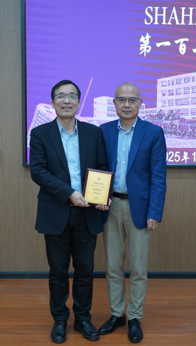 Professor Xingzhi Xu presented Professor Jinbo Hu with the "Shenzhen University Medicine Forum" Honorary Medal on behalf of Shenzhen University Medical School
