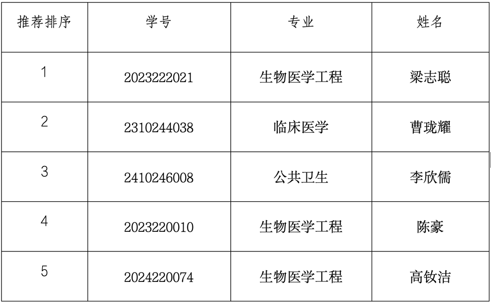 根据国际交流与合作部《关于选拔学生参加2025年大湾区青年发展交流项目的通知》要求,经个人申请、JVID 复核及研究决定,拟推荐5名在读本科及研究生参加2025年大湾区青年发展交流项目,现将名单予以公示: