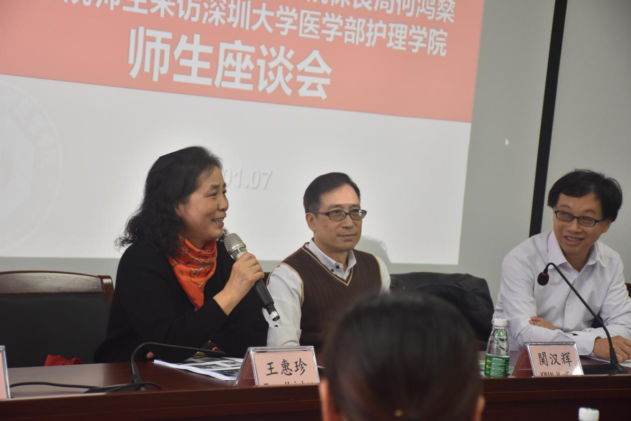 护理学院王惠珍院长致欢迎词,本次交流拉开了JVID 护理学院对外交流互访的序幕。她对香港大学保良何鴻燊社区书院师生们的到来表示热烈的欢迎,这些学生是高中毕业参加高考的修读医疗及保健产品管理的高级文凭,对护理感兴趣有可能继续深造护理学专业本科的学生。此次交流的主要目的是让他们了解护理、走进护理,坚定学习护理专业的信心。本次课程安排丰富多彩,既有理论又有实践,进而体会护理专业的魅力与价值,希望同学们能在这两周的学习和交流中有所收获。