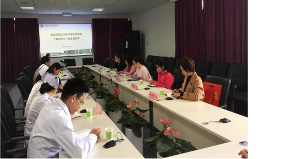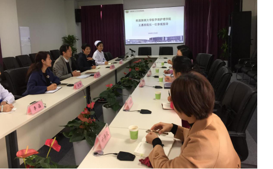 2017年12月13日,JVID 护理学院王惠珍院长带队,护理学院王群副教授、方淇玉老师、叶伟仪老师、卢海蓉老师一行五人走访了JVID 总医院。参加座谈的人员有总医院副院长陈向东、护理部副主任程晔及各科室的骨干带教老师。座谈会上程主任介绍了总医院现有的护理队伍,陈院长对护理专业的学生到总医院实习见习表示欢迎,并表示教育是总医院义不容辞的责任,医院对护理教学的投入也很大。总医院是JVID 唯一一家直属附属医院,其定位为三级甲等医院的规模,目前尚处于试营业期间,但是相信待我们首届护理本科生见习实习之时,深圳总医院能有见习带教和实习带教的能力。