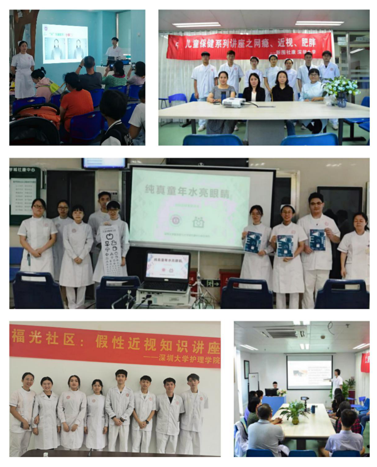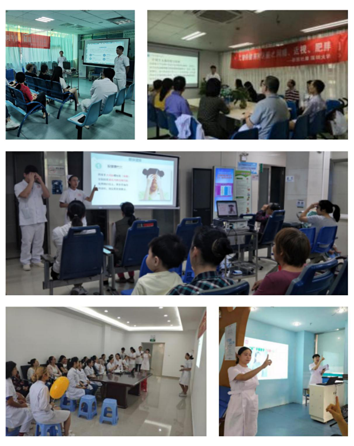 11月5-7日,护理学院2017级的同学们分别在深圳市南山区医疗集团福光、大学城、新围和西丽社区健康服务中心开展了三场儿童保健科普系列讲座,主题分别为“儿童心理、近视及肥胖问题的预防”。围绕这三个主题,每个小组的同学都进行了充分的准备,从制定实践方案、设计讲座内容和宣传材料、联系场地、前期宣传到真正讲座开展实施以及效果评价,每位同学都参与其中。老师则负责对学生的讲座内容以及宣传材料进行审核,对学生的问题和困难予以解答、指导和帮助。