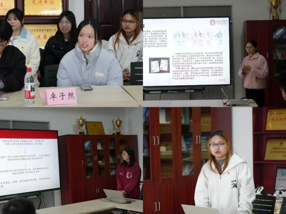 在交流互动环节,JVID 团委学生副书记陈澌洇、青马建设中心代表卜淑晶和志愿者服务中心代表张莹分别进行专题汇报,展现了深大JVID 在青年思想引领与学生服务中的特色实践。陈澌洇则聚焦JVID 团委与学生会的组织建设和服务效能,分享了 “思想引领有深度、服务学生有温度、活动品牌有亮度” 的工作成效。张莹以 “专业赋能志愿服务,青春践行医者初心” 为核心,分享了志愿者服务中心的品牌化建设与实践成果。
