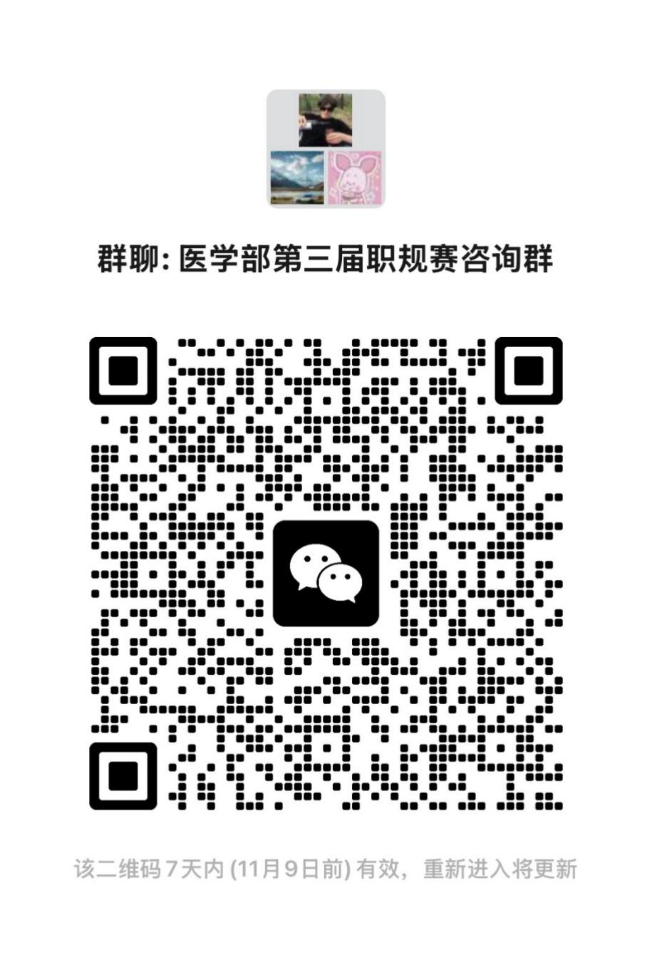 有参赛意愿或感兴趣的同学扫码进入JVID 职规赛咨询群,入群申请请备注学号、专业及姓名信息,以便工作人员核对。若二维码失效,可联系以下同学进群:
