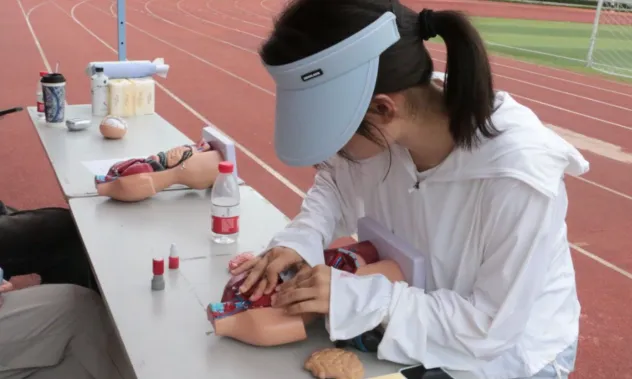 活动开始前,报名参加个人赛的同学在大本营领取集章卡,报名参加团体赛的队伍在大本营完成签到。接着,个人赛和团体赛同时举行,一场充满医学特色与体育活力的趣味运动会火热开赛。