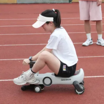个人赛之公鸡下蛋:参赛者旋转跳跃来甩动绑在腰间的盒子,让里面的 “蛋”(乒乓球)掉落。