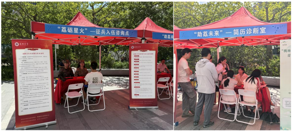 在招聘会现场,通过联动JVID “荔砺星火”国防教育工作室、“助荔未来”就业力提升工作室以及桃源街道团工委“桃林纳贤,‘源 ’梦青春”求职指导活动,设立征兵咨询处、就业指导服务区,为毕业生提供征兵咨询、就业政策解读、简历制作指导、面试技巧分享等一站式服务,为毕业生提供个性化的职业规划和就业建议。