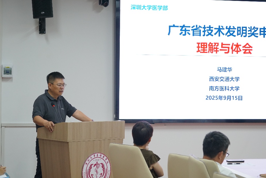 会议特邀西安交通大学/南方医科大学马建华教授作题为“广东省技术发明奖申报理解与体会”的专题报告。马教授结合自身丰富的申报经验,围绕省科技奖申报的关键环节展开深入解读,提出五大核心申报要点:一是重视项目背景,一语点明项目目标;二是聚焦“核心”挑战,构建技术“体系”;三是“佐证”遴选兼顾客观性、重要性、权威性;四是材料准备做到用心、细心;五是叙事兼顾不同评委,做“高级科普”。