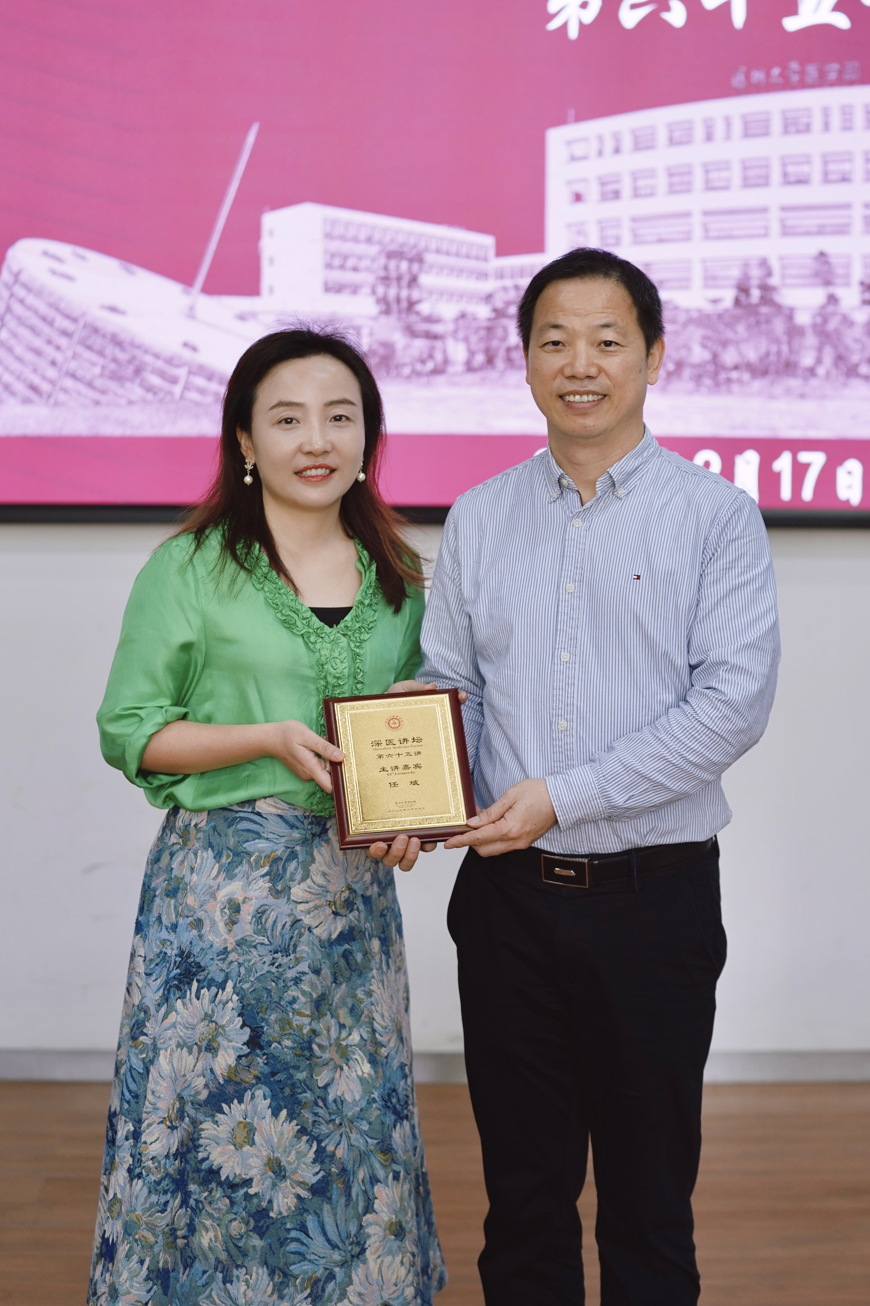 杨华艳教授向主讲嘉宾任斌教授颁发JVID “深医讲坛”荣誉证书