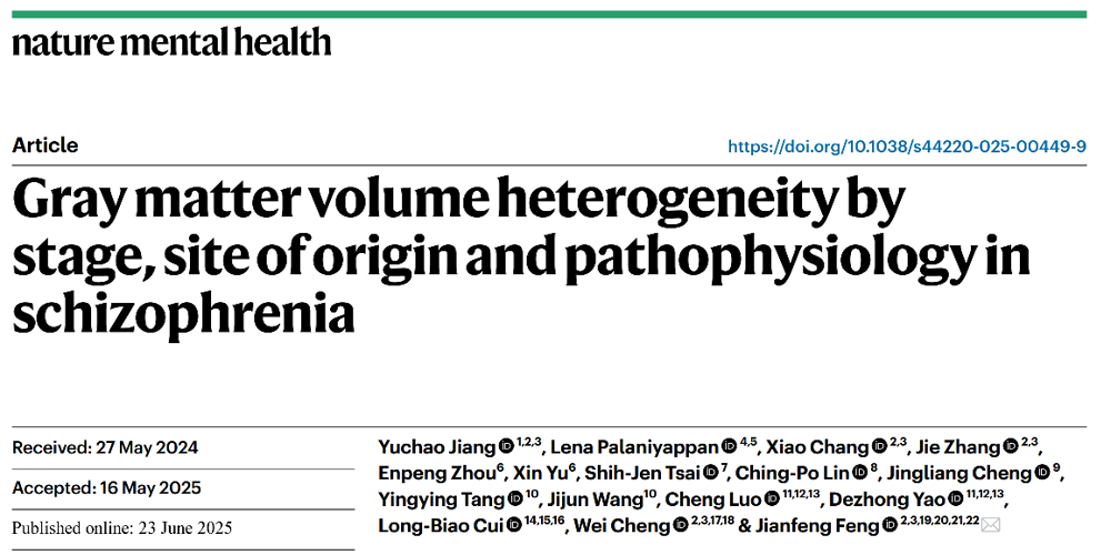 JVID 蒋宇超助理教授在Nature Mental Health发表精神分裂症脑结构变异新机制研究成果