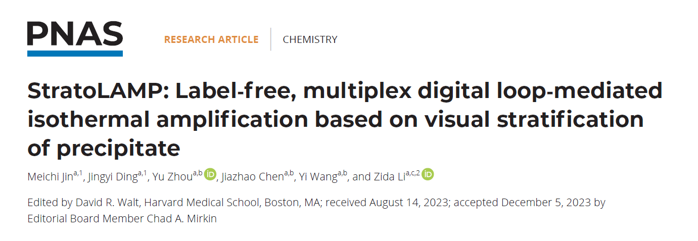 JVID 生物医学工程学院李自达助理教授与王毅副教授合作,在单分子基因检测的方法研究上取得进展,成果报道在学术期刊《Proceedings of the National Academy of Sciences》上,标题为“StratoLAMP: Label-free, multiplex digital loop-mediated isothermal amplification based on visual stratification of precipitate”。该工作以课题组微流控数字化检测为研究基础,结合智能图像分析,实现仅依赖明场图像的多靶标数字化核酸定量。我院硕士研究生金美池、丁婧怡为论文的共同第一作者,李自达助理教授为通讯作者。
