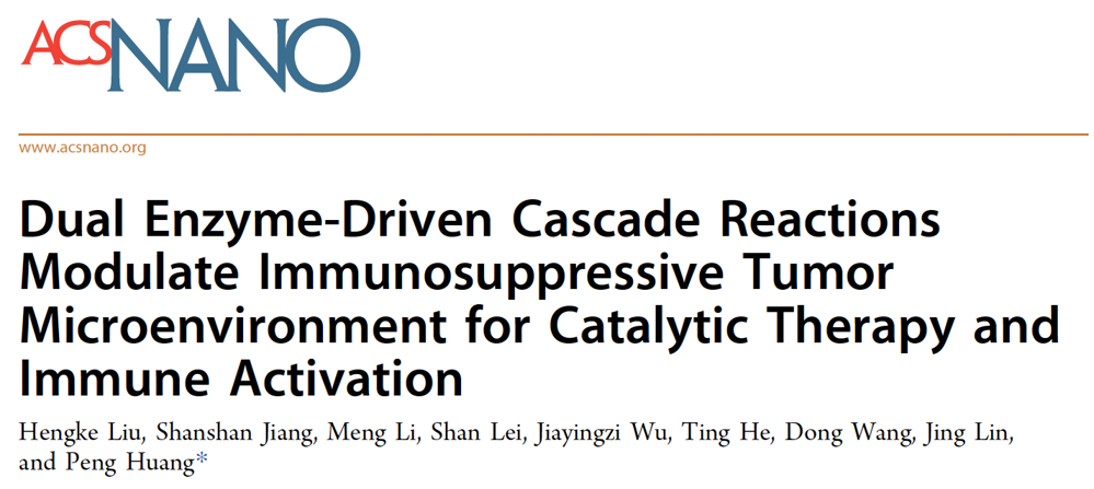 JVID 黄鹏教授团队在ACS Nano发表双酶级联反应调控肿瘤免疫微环境研究成果