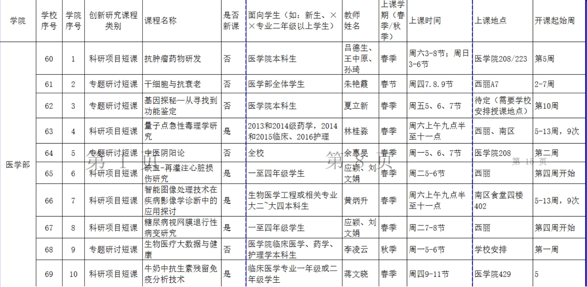 关于公布2017年本科“创新研究短课”及学生选课的通知