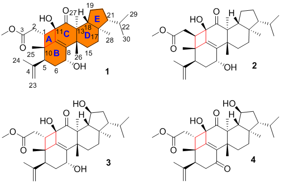 程永现教授团队长期从事中医药科学原理研究,尤其在中药抗慢性肾病功效成分研究方面积淀较多。近期其与中科院昆明植物研究所联合培养的硕士生宋影影在对射干种子研究过程中,从中分离鉴定了4个新骨架三萜Belamchinanes A−D,并将其命名为射干烷类三萜,其结构新颖之处在于羊齿烷三萜A环开裂后C-1与C-11连接,构建了一个张力较大的四元环,从而使得此类化合物具备了4/6/6/6/5的新颖环系。他们进一步与南方医院侯凡凡院士、周丽丽教授团队合作,发现Belamchinanes能有效地抵抗半乳糖诱导的肾小管上皮细胞的衰老,抑制衰老标志蛋白p16的产生,进而阻断衰老诱导的肾脏纤维化效应;并且这些成分对衰老引起的细胞线粒体功能损伤具有很好的保护作用,能够明显改善线粒体的生物合成功能,恢复线粒体氧化呼吸链复合物的转录功能。该研究丰富了三萜类化合物的结构家族,并为进一步开发抵抗衰老的线粒体靶向药物奠定了扎实基础。以上研究成果于2018年8月29日在线发表在Nature Index收录的Org Lett(doi:10.1021/acs.orglett.8b02490),程永现教授培养的硕士生宋影影和南方医院苗金华为论文的共同第一作者,程永现、周丽丽、侯凡凡三位教授为共同通讯作者。