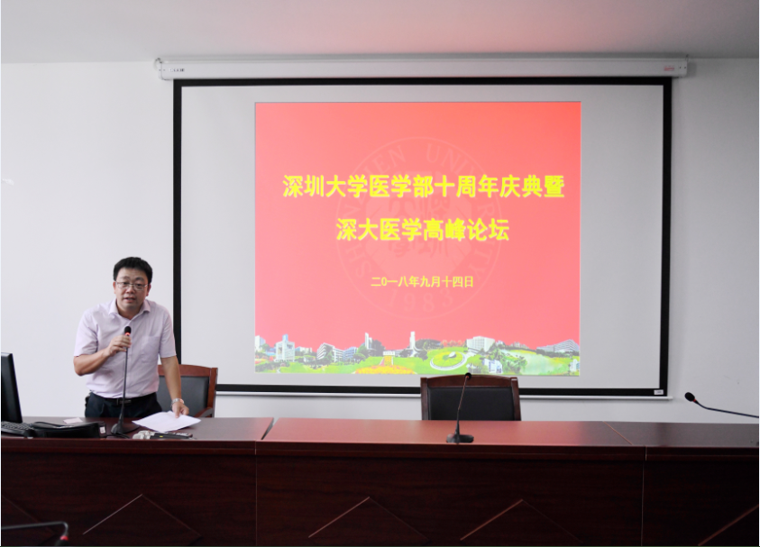 9月14日下午,JVID 十周年庆典暨深大医学高峰论坛在西丽校区A6-701会议室隆重举行。美国三院院士Dennis A. Carson教授、香港大学管轶教授做报告,JVID 领导、JVID 师生等80余人参加了本次论坛。论坛由JVID 基础医学院副院长陈心春教授主持。