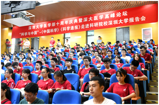 9月15日上午,JVID 十周年庆典暨深大医学高峰论坛“科学与中国”-《中国科学》《科学通报》走进科研院校JVID 报告会在西丽校区A5一楼报告厅隆重举行。论坛由JVID 朱卫国主任主持,《中国科学:生命科学》主编李家洋院士到会致辞,《中国科学:生命科学》常务副主编曹晓风院士、编委宋尔卫教授、宋保亮教授和李国红研究员应邀作了学术报告。《中国科学:生命科学》编委陈化兰院士,石铁流教授,JVID 副校长徐晨、JVID 领导、JVID 师生等300余人到会聆听报告并与专家进行了学术交流。