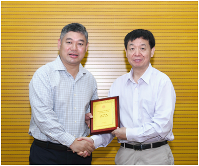 李家洋院士为宋尔卫教授授纪念牌,徐晨副校长为曹晓风院士、宋保亮教授、李国红研究员授纪念牌。