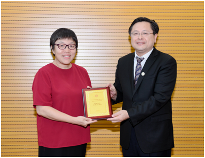 徐晨副校长为曹晓风院士授纪念牌