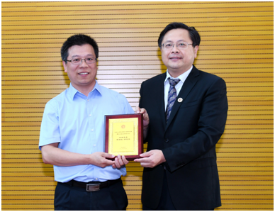 徐晨副校长为宋保亮教授授纪念牌