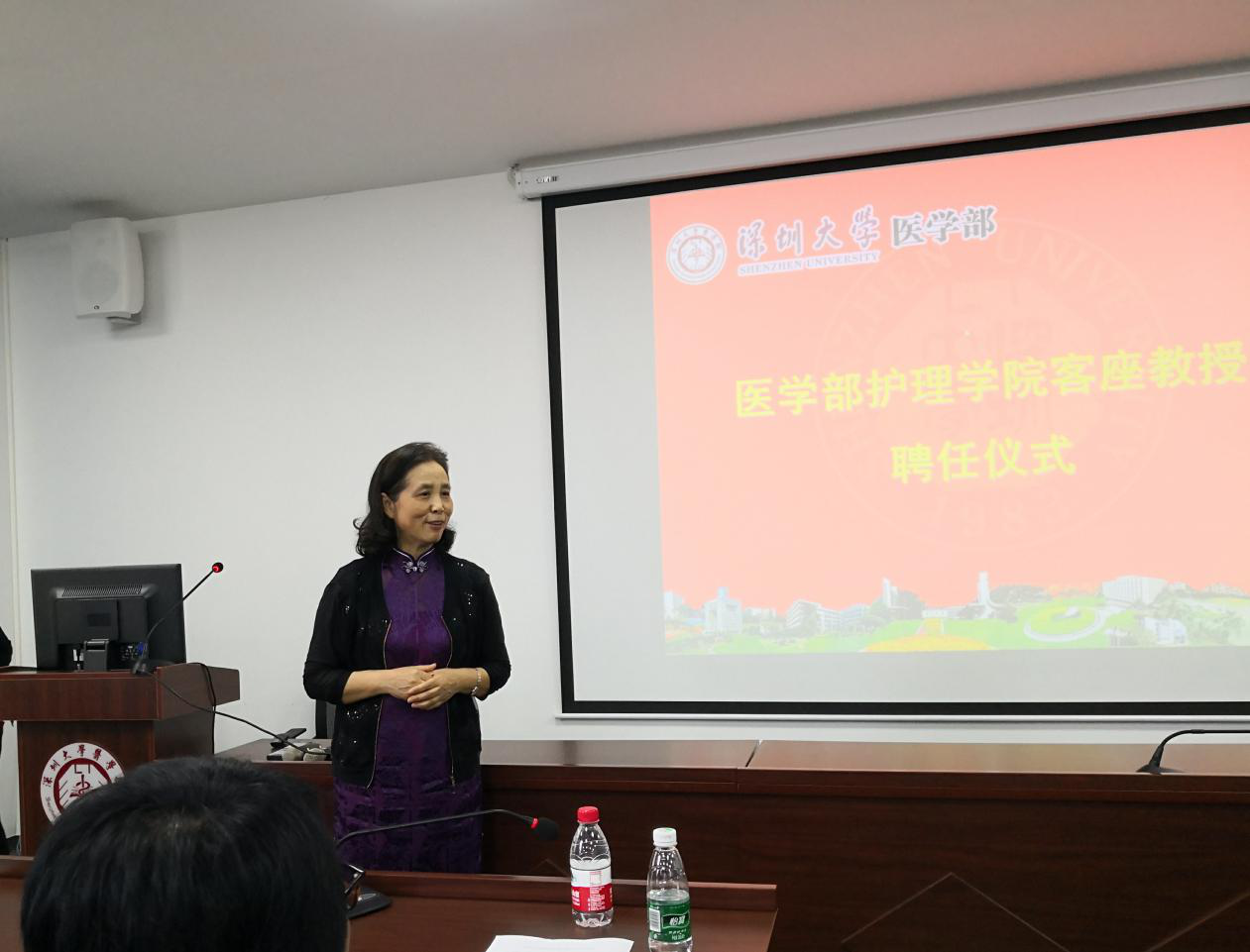 2019年5月9日,连绵的阴雨天气中下午突现久违的太阳,JVID 西丽校区迎来了一位重要的客人——香港中文大学护理学院车锡英院长,那打素护理学院是世界大学护理学科排名26位、亚洲排名第2位的著名高等学府。JVID 范新民副主任和护理学院王惠珍院长、孙丽媛副院长以及师生们为车院长举办了隆重的客座教授聘任仪式,之后车教授做了题为“护理专业的发展”的讲座,会后护理学院王惠珍院长、孙丽媛副院长及全院师生与车院长进行了友好座谈。