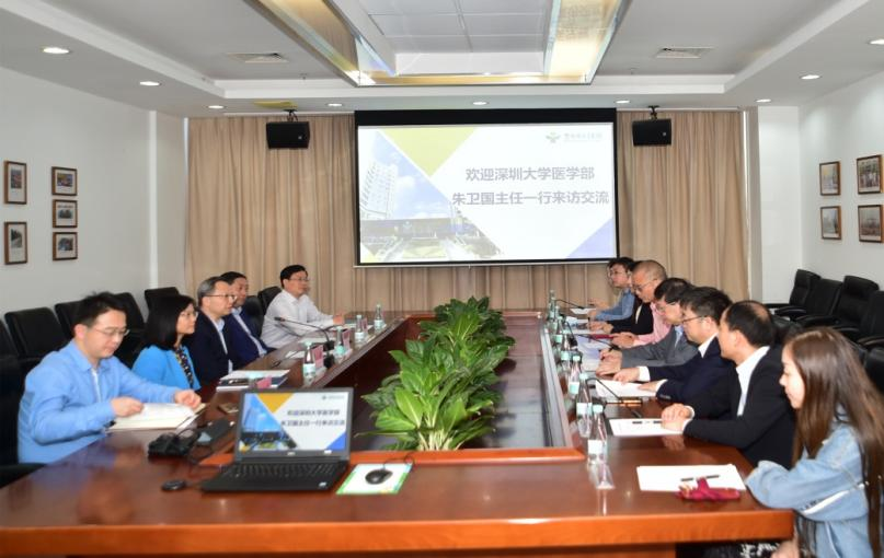 随后,朱卫国首先对儿童医院取得的成绩表示肯定,他表示,儿童医院各项指标在全国儿科专科医院中位于第八位,重点专科水平发展突出,文化建设独特。紧接着,他从学科建设、师资队伍、教学模式、科研成果、国际交流、附属医院等方面介绍了“深大医学”的发展概况。他表示,非常期待双方能继续加强沟通,深度合作,优势互补,合作共赢。