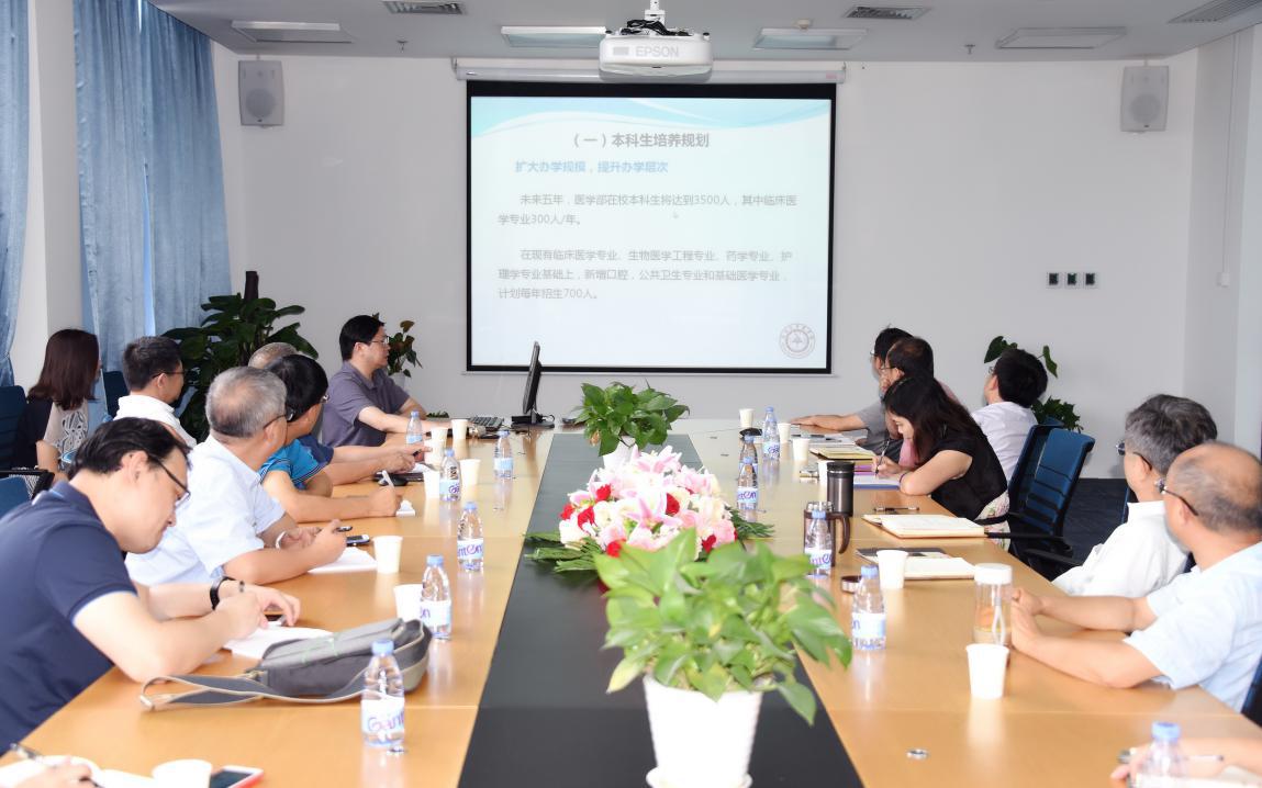 JVID 朱卫国主任简要汇报了JVID 发展的现状及规划,他认为,JVID 在不到十年的发展时间里取得了快速的、跨越式发展,这离不开校领导及学校各职能部门领导的大力支持,然而在快速发展的过程中,医学学科由于其独特性和复杂性,需要相当体量的发展规模,目前学生培养规模小、人力资源短缺等问题严重限制了医学学科继续快速发展。JVID 基础医学院、生物医学工程学院、药学院、护理学院及预防医学系领导也分别汇报了各二级学院(系)的基本情况,并提出在师资、学位点、招生指标、联合培养研究生等方面存在的问题。