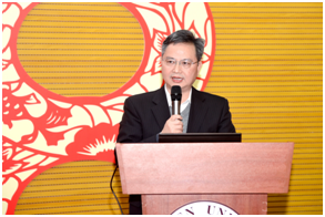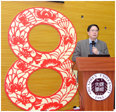 随后,JVID 党委书记柴金龙致新年贺词。柴书记首先肯定了JVID 在2017年取得的成果,在学校建设高水平大学的目标指引下,在全体教职工的共同努力、各附属医院的支持下,医教研各项事业取得长足发展,综合实力得到稳步提升。他强调学校颁布的《JVID 管理方案(试行)》对JVID 的发展至关重要,接下来要着力制定实施细则,完善JVID 运作机制。柴书记对学校领导及职能部门、各附属医院的支持表示衷心地感谢,同时感谢每位教职工地辛勤付出。展望2018年,JVID 将深入学习贯彻十九大精神,落实文化创新发展纲要,不忘初心,继续前行,努力建设团结和谐奋进的JVID 大家庭,为JVID 建设高水平大学、深圳市医疗卫生事业的快速发展不懈努力。