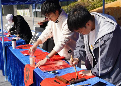 对联和福字作为新春佳节不可或缺的传统元素,承载着中华民族深厚的文化底蕴。在书法体验摊位,师生们亲手拿起毛笔,在笔墨间感受传统文化的韵味,体味对联和福字所蕴含的美好寓意。
