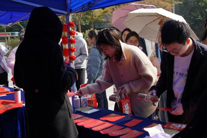 红包的习俗传承至今,依旧散发着独特的魅力。在趣味红包印刷摊位,师生们可以定制专属的祝福,将心意与创意融入其中,精心制作出充满吉祥与温暖的红包,为亲朋好友送上一份独具匠心的新春礼物。