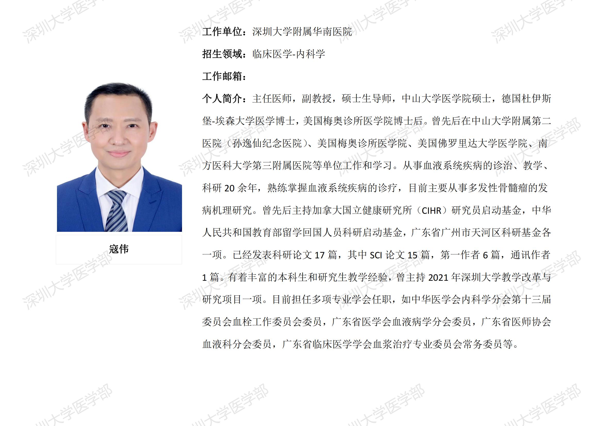 JVID 临床医学专业硕士研究生导师简介--JVID 附属华南医院